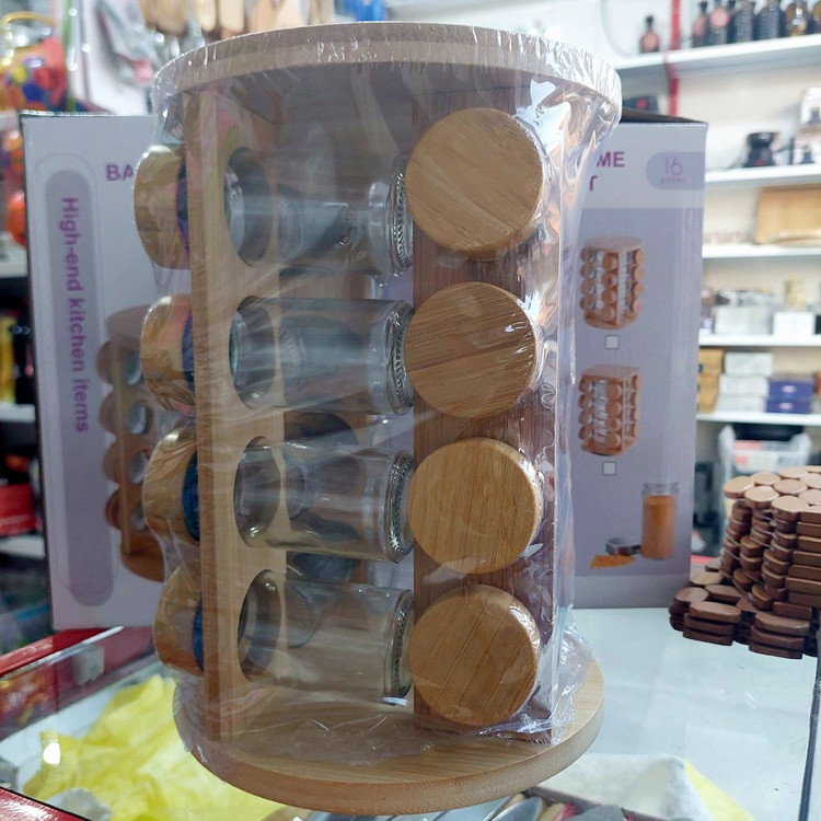 با این جا ادویه چرخان بامبو آشپزخونت همیشه مرتب، شیک و در دسترس خواهد بود. طراحی دایرهای و چرخان این استند باعث میشه هنگام آشپزی به راحتی ادویهی مورد نظرت رو پیدا کنی، بدون اینکه دنبال شیشهها بگردی.