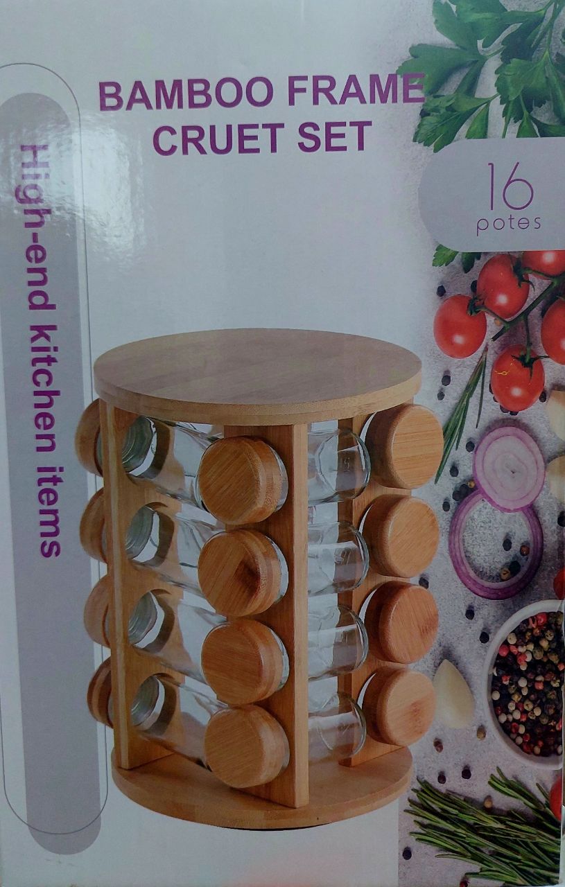 🧂 دارای ۱۶ عدد شیشه ادویه با درب محکم و درزگیر